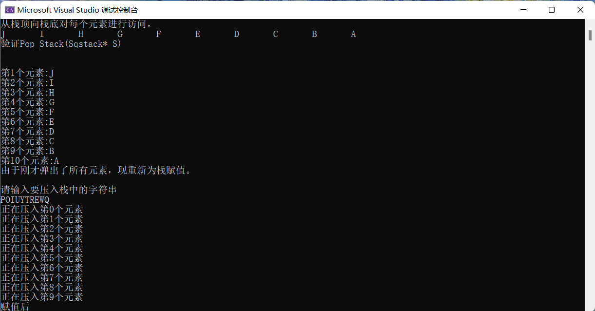//由于刚才弹出了所有元素,现重新为栈赋值。