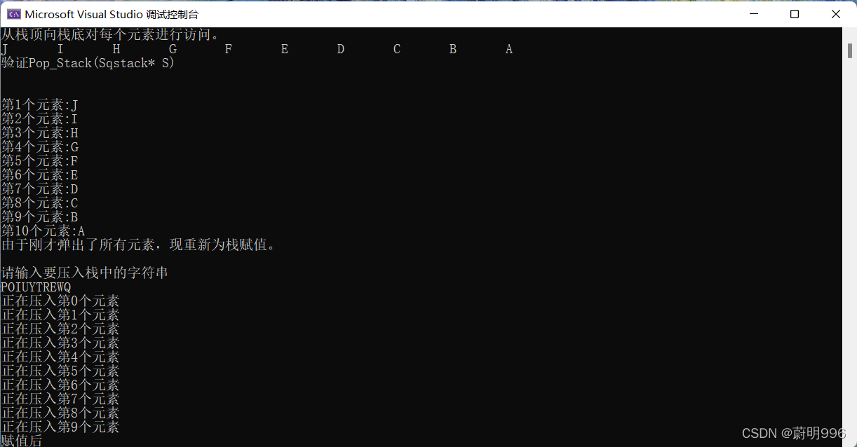 printf("第%d个元素:%c\n", i + 1, Pop_Stack(&S));
