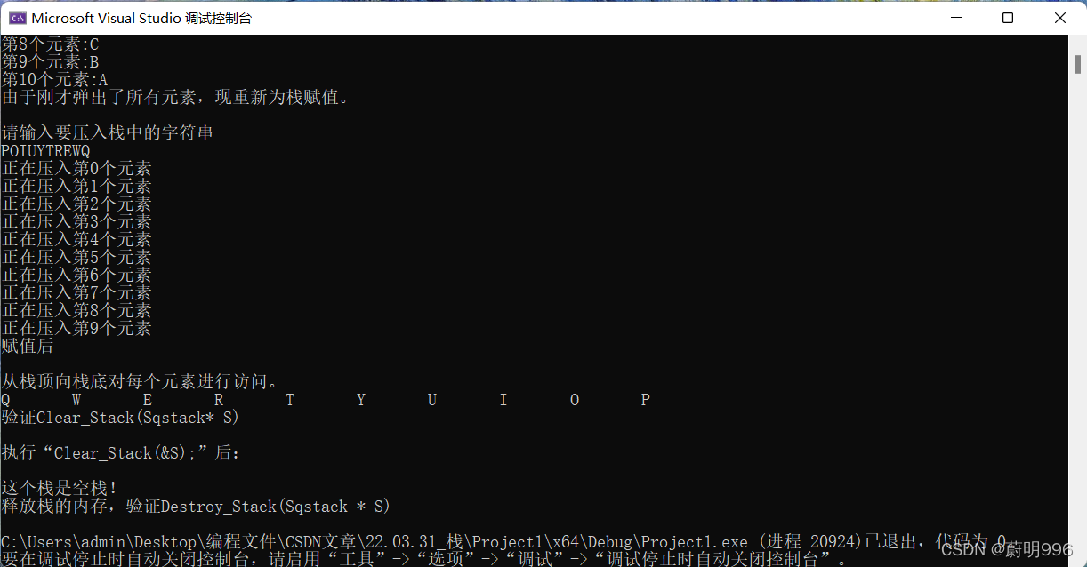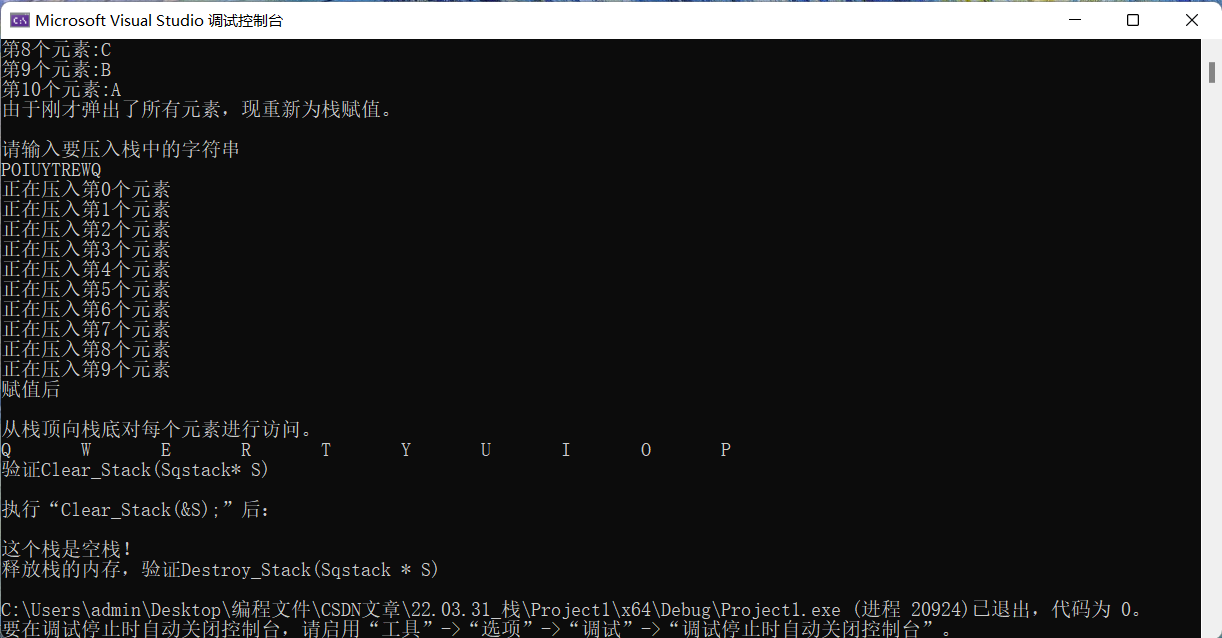 puts("验证Pop_Stack(Sqstack* S)\n\n");