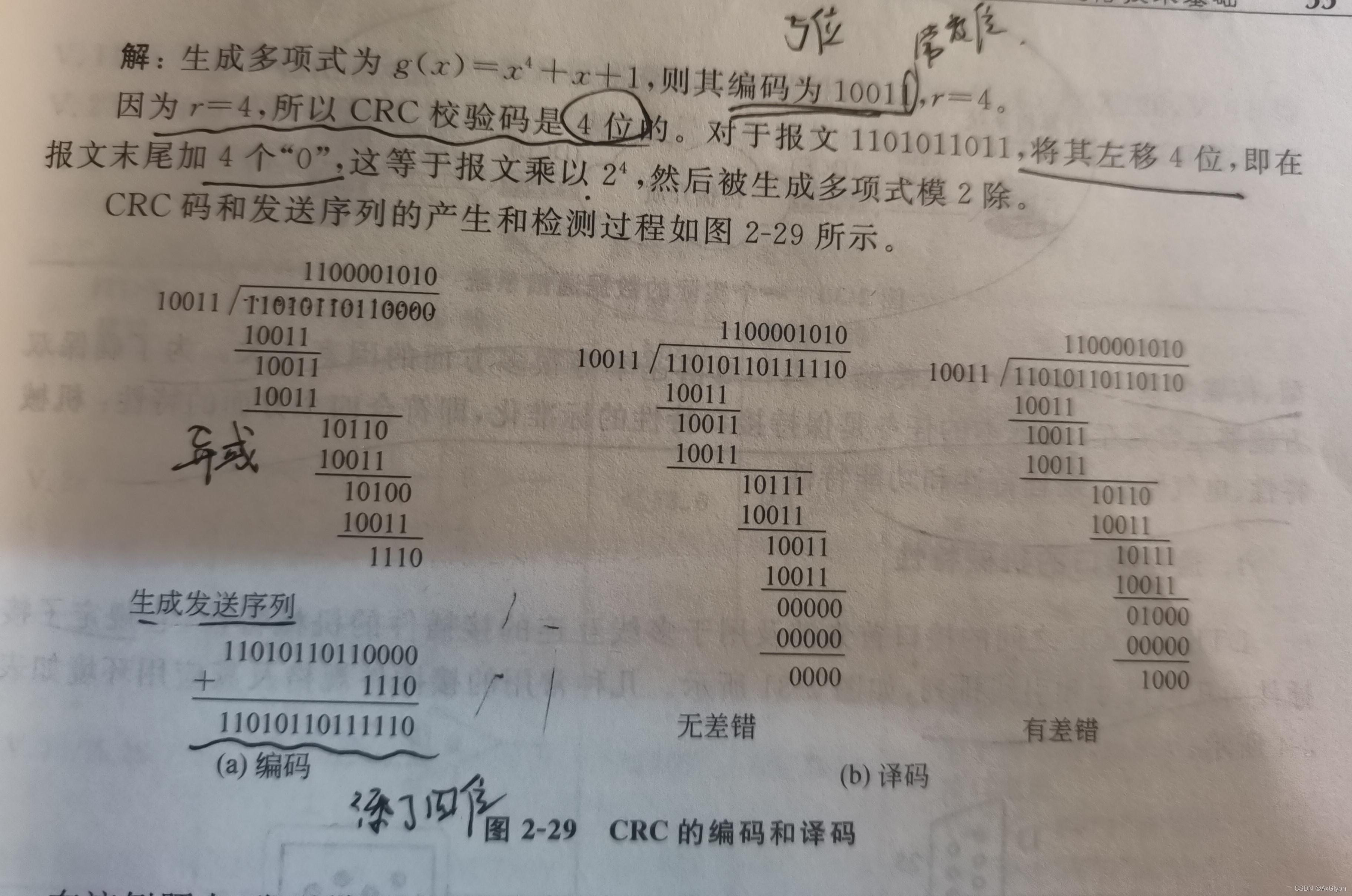 这个很简单,上面计算的生成码有n位,就在原比特序列后面加n-1个0