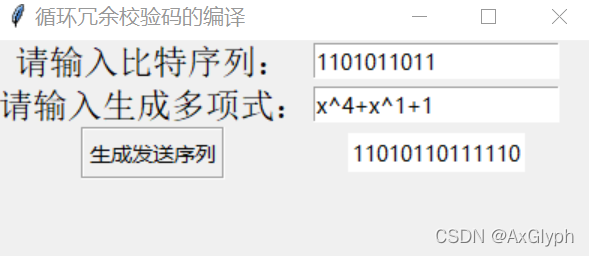 这里不再赘述循环冗余校验码的编码方式,直接进入编程。为了便于使用,博主在其中添加了根据tkinter模块编写的GUI界面辅助。全部代码在文末
