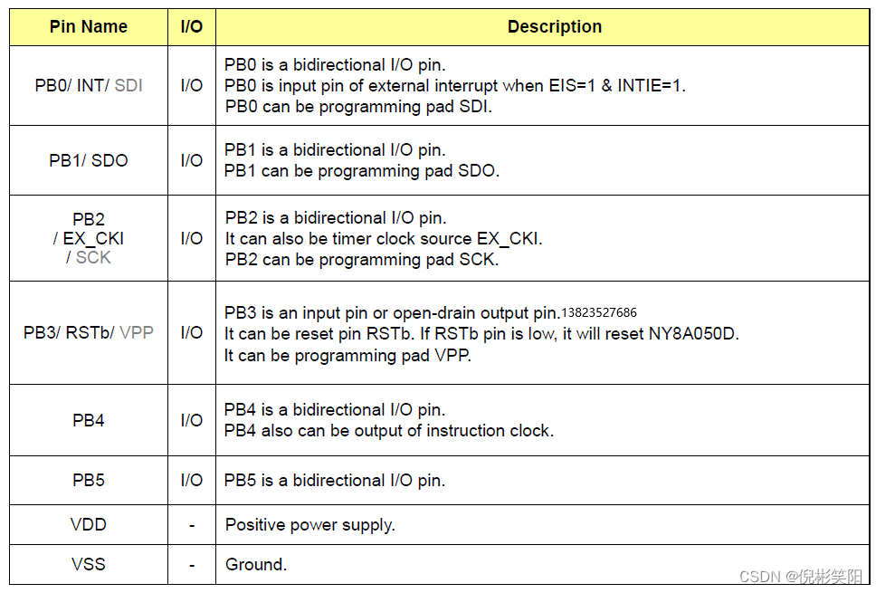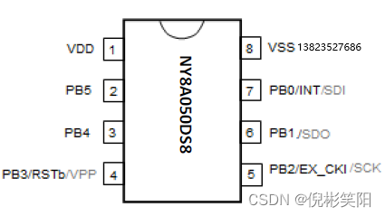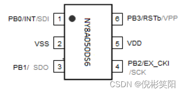 NY8A050D 6根可分别单独控制输入输出方向的I/O脚(GPIO)、PB[5:0]。