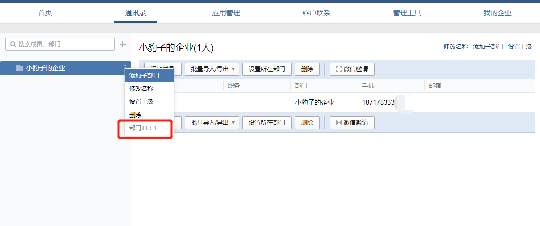 我这个python脚本是通过部门id进行群体发送,所以这个部门id到后面会有用。