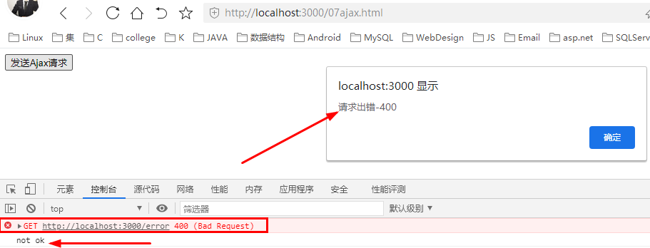 服务器端设置了对/error以状态码400进行响应,响应内容是"not ok"
