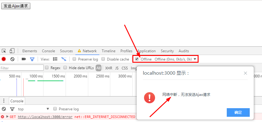 alert('网络中断,无法发送Ajax请求');