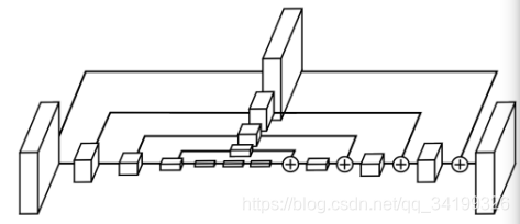 特征提取网络也就是Backbone使用的是Hourglass网络如图3,这也是从人体姿态估计处借用来的灵感。顾名思义,这个网络的形状非常像沙漏,网络前半部分通过卷积池化处理,进行多次下采样操作,获得一些分辨率较低的特征,从而使计算复杂度降低。下采样不断变小feature map,后面则通过上采样增大feature map恢复到输入图像大小,上采样操作使得图像的分辨率增高,同时更有能力预测物体的准确位置。由于在maxpooling层中丢失了详细信息,因此将添加残差层以将详细信息带回到上采样的特性中,因此才有类似fpn那样将前后网络相加的操作,每个残差结构的详情如图4所示。当多个沙漏模块被堆放在网络中时,沙漏模块可以重新处理这些特性以捕获更高级别的信息。这些特性使得沙漏网络也成为目标检测的理想选择。沙漏网络在关键点检测上已经证明了其有效性。