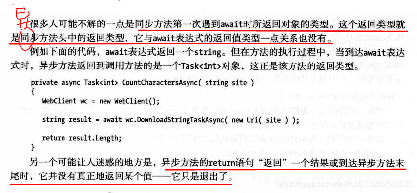 异步方法中await表达式之前的部分,在调用异步方法时,先同步执行该部分,只有同步执行完wait表达式之前的部分,才会异步执行await表达式中的内容,并返回到调用方法,异步执行完await表达式之后再执行异步方法中的后续部分