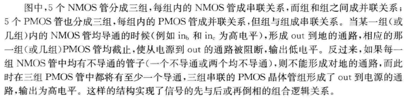 (2)整体是与非逻辑时,NMOS串联,PMOS并联;整体是或非逻辑时,NMOS并联,PMOS串联