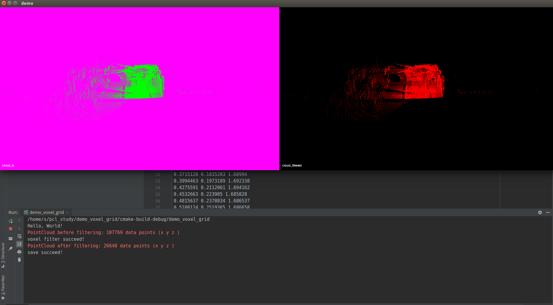 std::cout<<"voxel filter succeed!"<<std::endl;