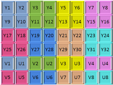 人类视觉系统对亮度(luma)的敏感度高于对色度(chroma)的敏感度,因此可以对色度数据进行下采样: