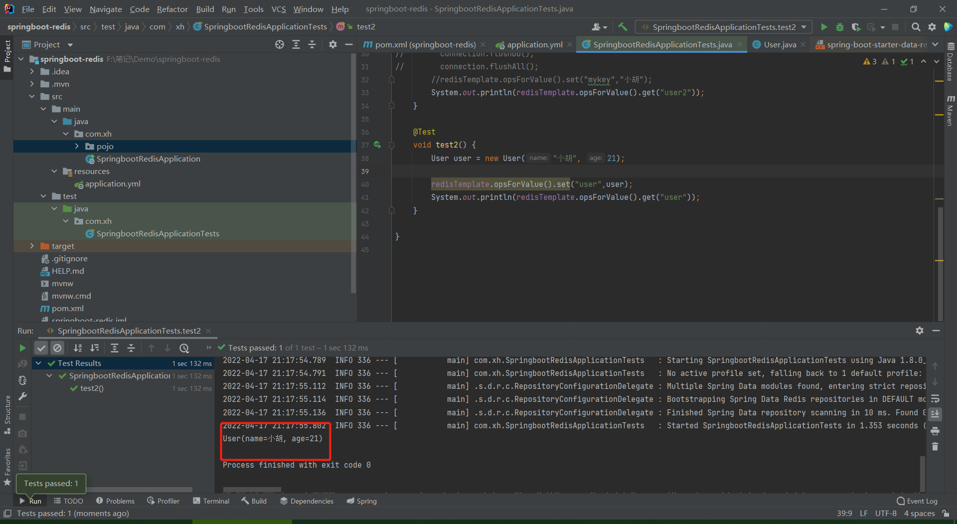 System.out.println(redisTemplate.opsForValue().get("user"));