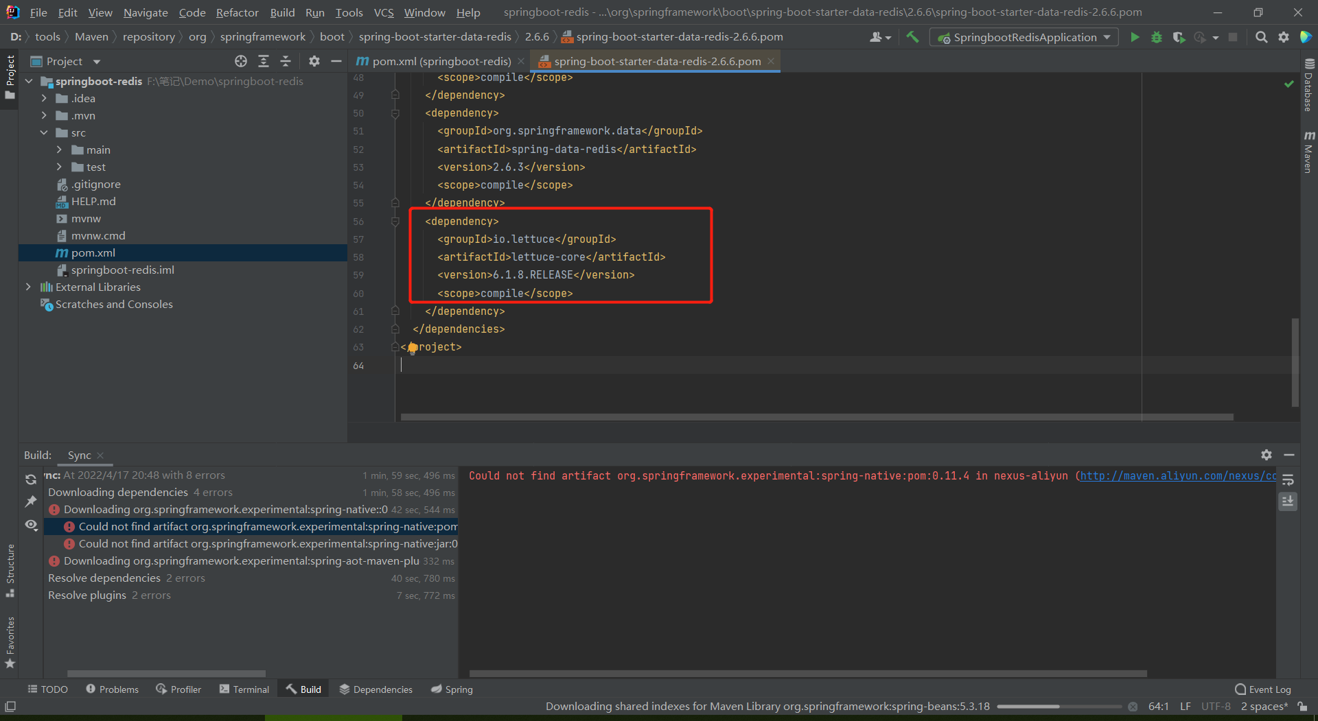 在spring-boot-starter-data-redis中,我们发现使用的是lettuce。