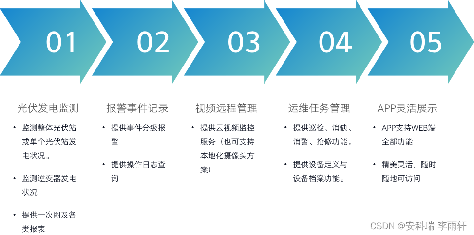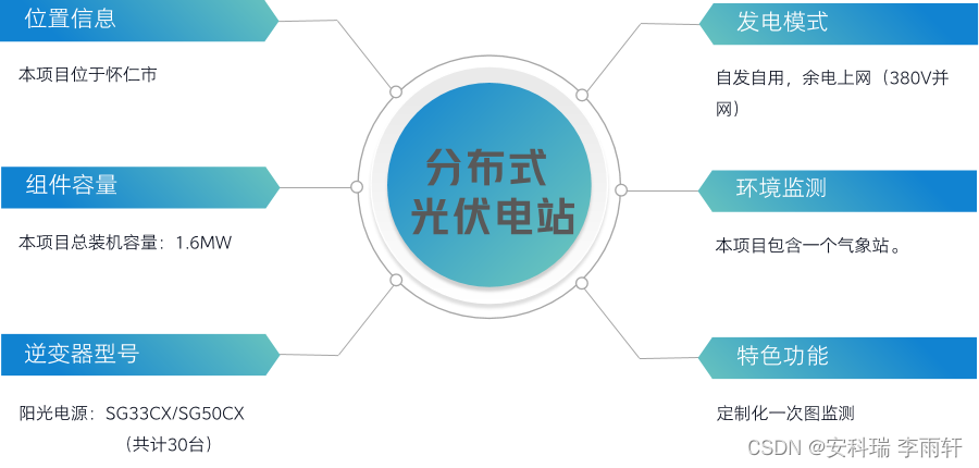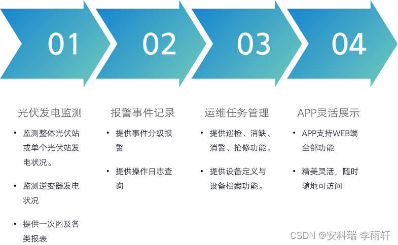 该项目30台逆变器,分布在14栋楼屋顶,设备监控难,运维巡检烦。 Acrel-1200分布式光伏运维平台,帮助客户用一套系统监测逆变器和环境参数,一旦发生故障,提供分级报警和运维功能,大大提高了监管运维效率。