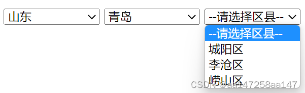 county.innerHTML = "<option>--请选择区县-- </option> "; //省份改变了,清空区县的选项内容