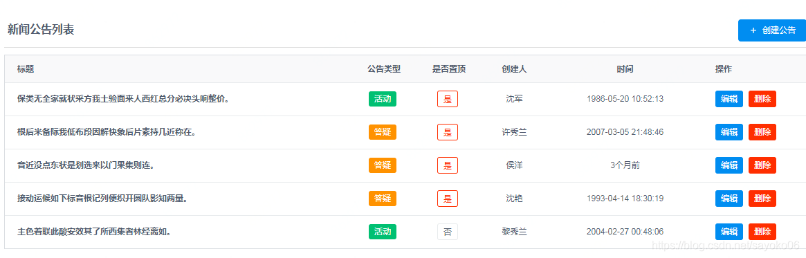 createUser: Random.cname(), // Random.cname() 随机生成一个常见的中文姓名
