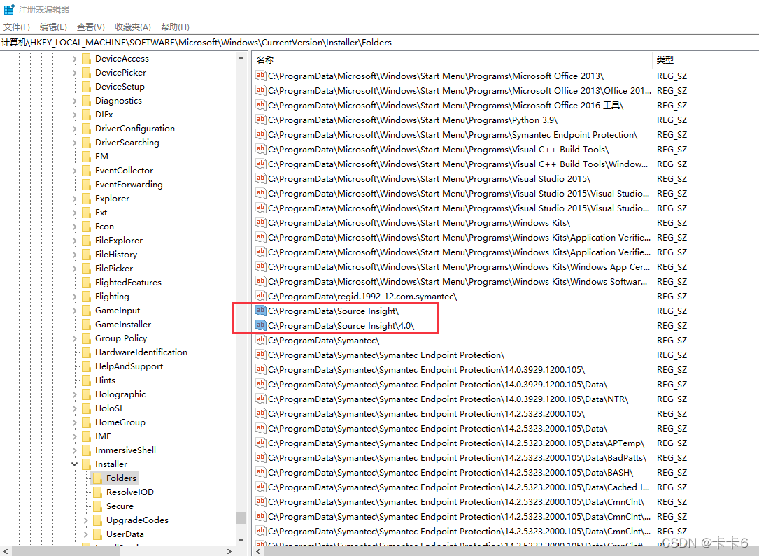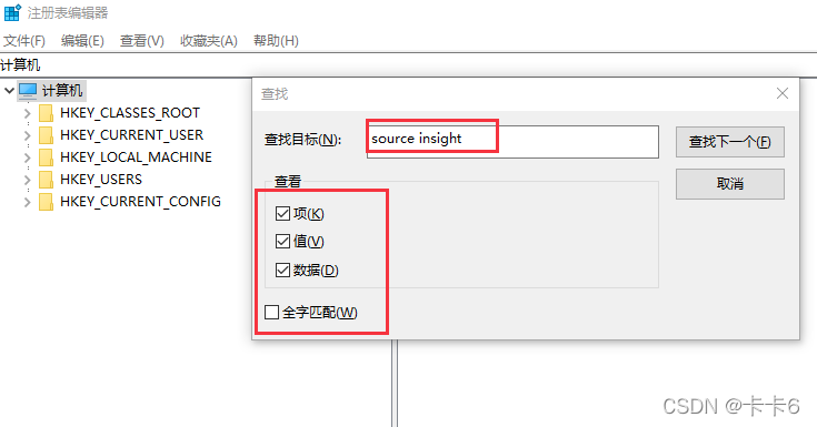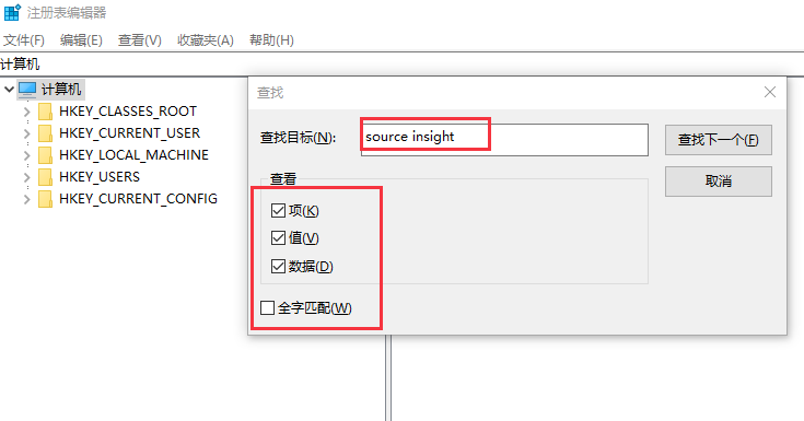 删掉所有带有source insight字样的目录或者文件。要不停地搜索,不停删除。直到将整个注册表搜索完毕且清理完毕。如下: