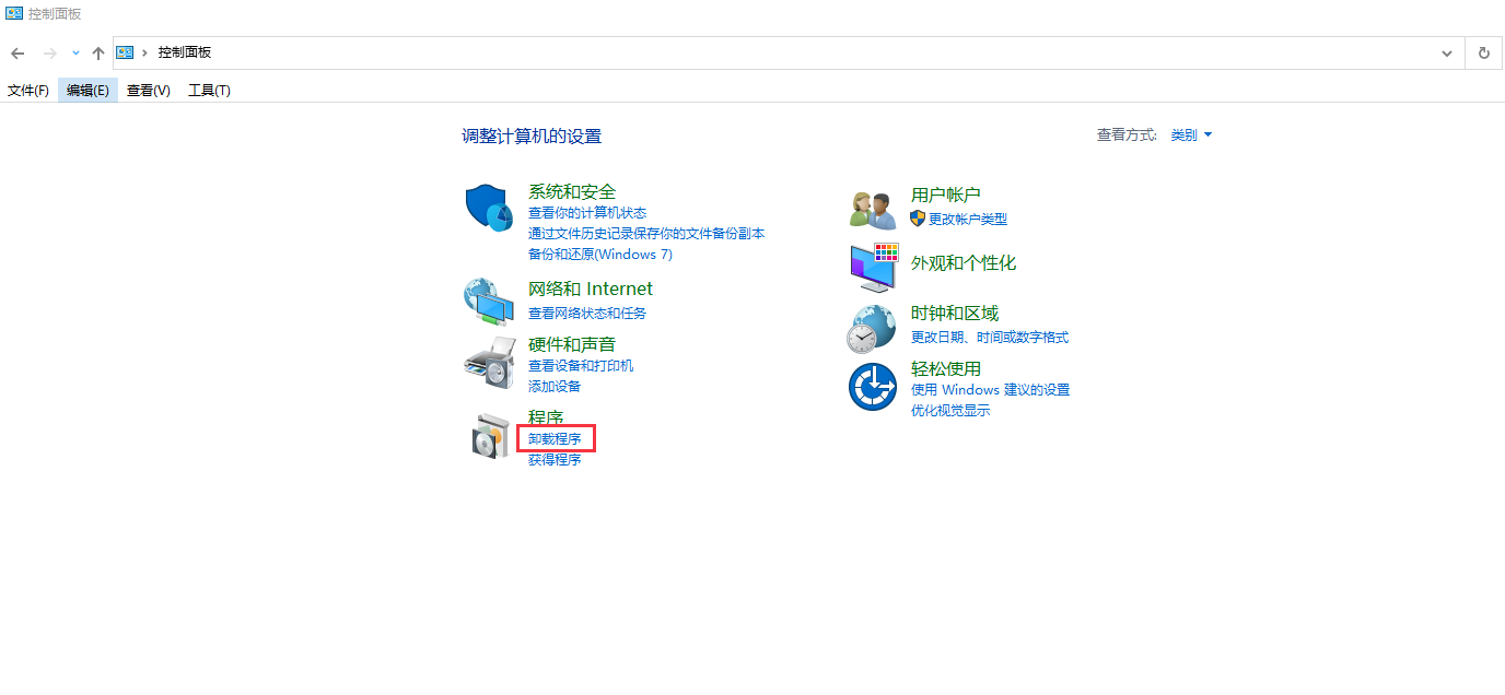 可以使用windows的控制面板进行卸载,也可以使用电脑管家等软件。这里用的是系统的控制面板。