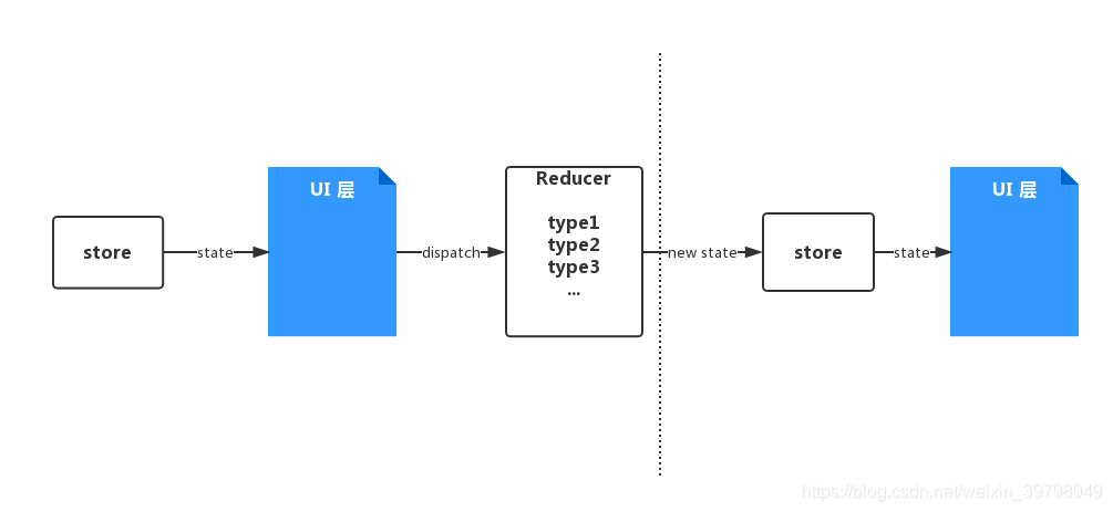 reducer接受 action ,根据action的type来确定需要执行的更新操作。