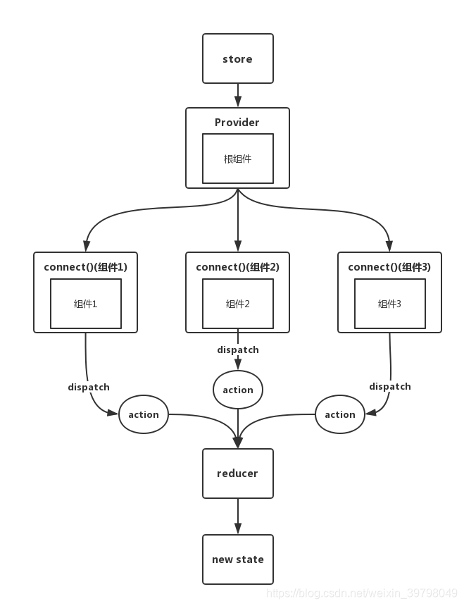 需要知道 redux 不能直接更改 state ,而是通过dispatch(分发)action(描述此次改动的细节)来创建一个新的state ,这样有利于跟踪每一次改动。