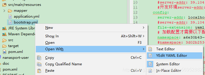 - 重启eclipse 操作如下,打开文件的时候以YEdit YAML Editor 的形式打开