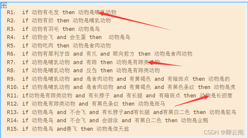 2.依次检索,从规则库中找对映的规则