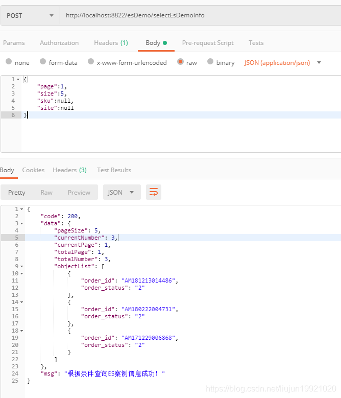 调用查询接口,查询到分页数据(ES查询必带分页,若不写分页代码,ES也会默认分页10条数据)