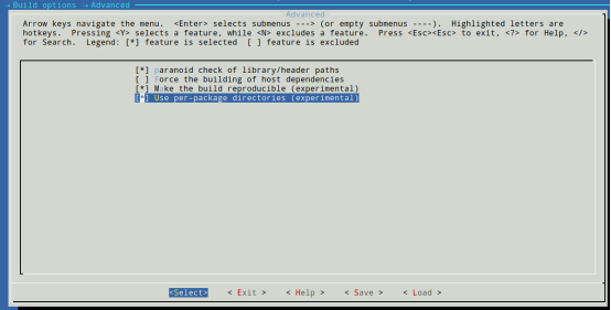 在→ Build options → Advanced选项下面,选择Use per-package directories (experimental),可以使用make -j<N>指定并行构建的线程,加快构建过程。