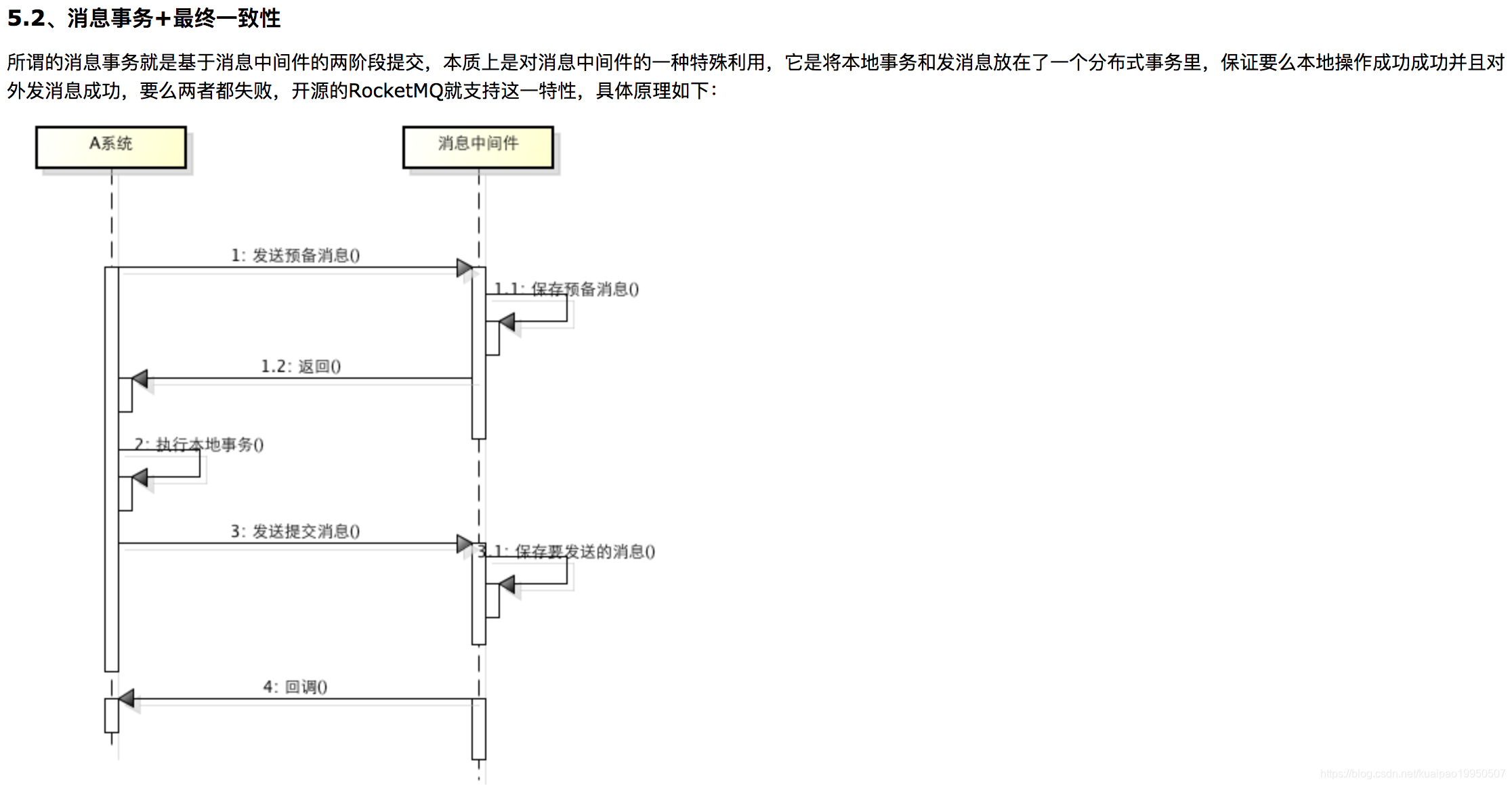 • 基于可靠消息最终一致,一阶段服务正常调用,同时同事务记录消息表,二阶段则进行消息的投递,消费。应用实施成本较低