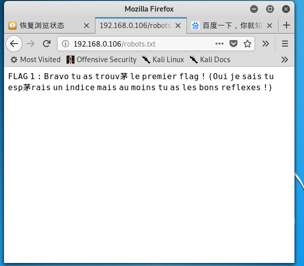 我访问一下robots.txt ,很幸运地找到第一个flag