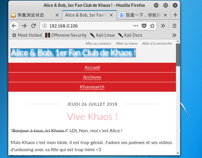 Description : Two french people want to start the very first fanclub of the youtuber Khaos Farbauti Ibn Oblivion. But they're not very security aware !