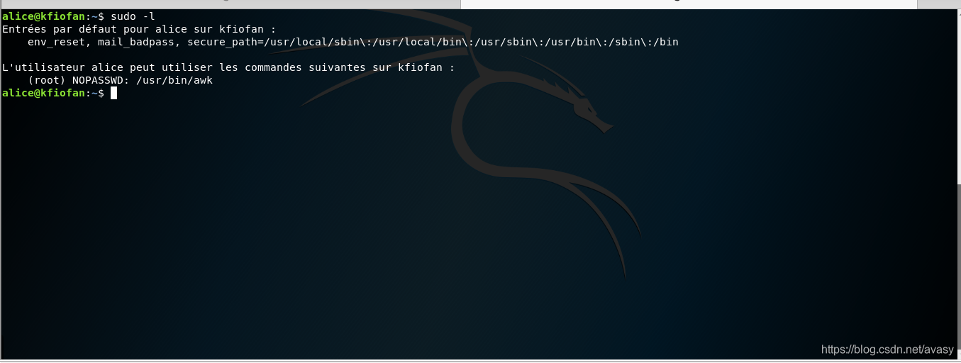 这里的意思是说,alice用户可以通过以下这种方式不用输入root用户的密码就可以执行root权限