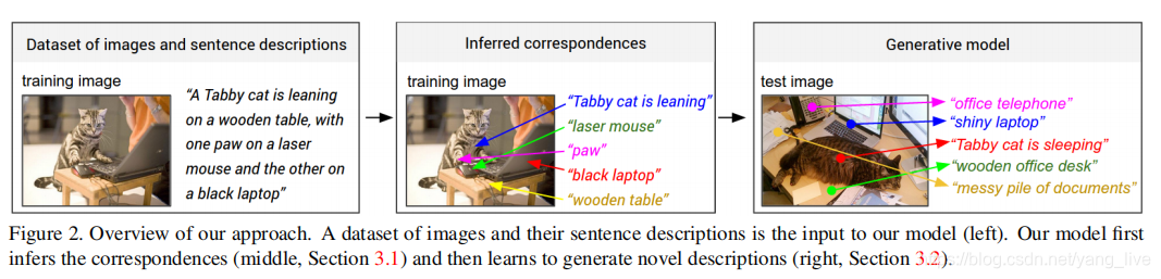 - 图像数据和其对应的语句描述作为模型的输入(左图)