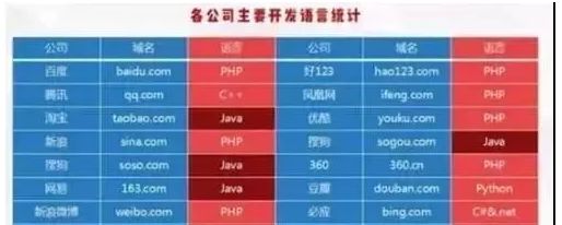 从国内排名靠前网站的主要开发语言,也可以看出Java在各大开发语言中的地位。