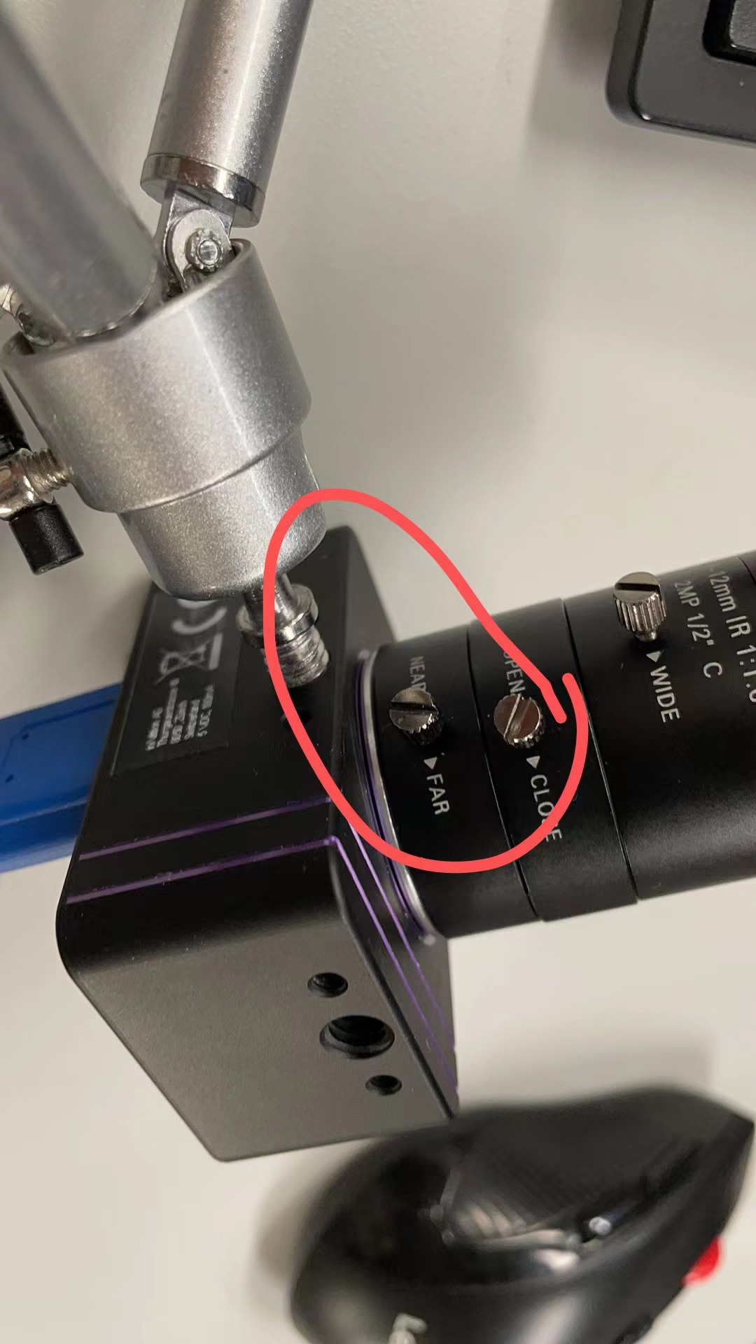 首先需要调镜头。如下图所示。中间为光圈,需要调到最大。最后的为远近,需要调到最远,剩余的就是焦距(最外面的)