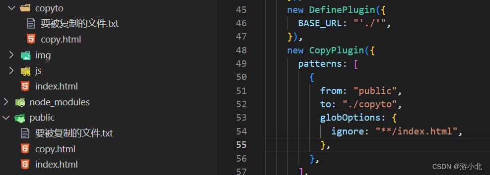 const CopyPlugin = require("copy-webpack-plugin")3. 配置:会被打包在 build 文件夹下