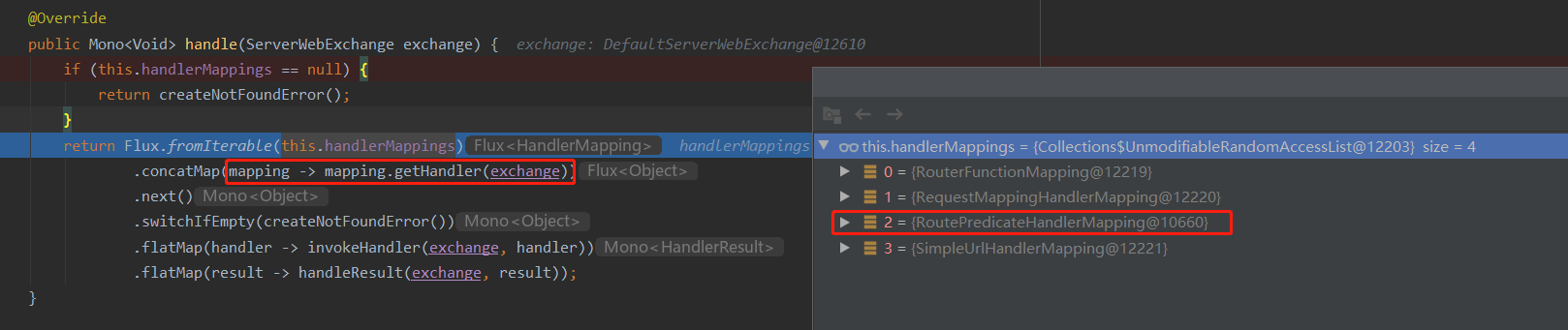 我们知道Spring Cloud Gateway进行请求转发,是在配置文件里配置路由信息,一般都是用url predicates模式,对应的就是RoutePredicateHandlerMapping 。所以,DispatcherHandler会把请求交给 RoutePredicateHandlerMapping.