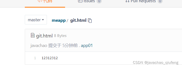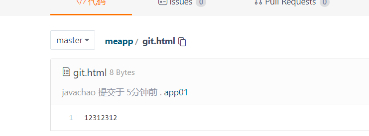 2.输入命令 git clone https://gitee.com/javachao/meapp.git