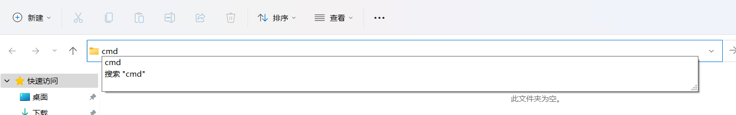 1.首先找到我们需要把项目拉取到的文件夹,在文件路径输入cmd
