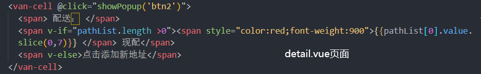 <span v-else>点击添加新地址</span>这句话的意思为:如果pathList这个列表中没有数据,那么则就变为点击添加新地址,如果这个列表中有数据,那么就显示前7个字符为当前渲染的数据