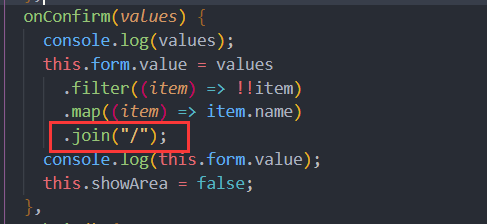 在插件中转换成了/的格式的字符串,所以直接得到前7个字符即可,也就是所谓的北京市/北京市(含头不含尾)
