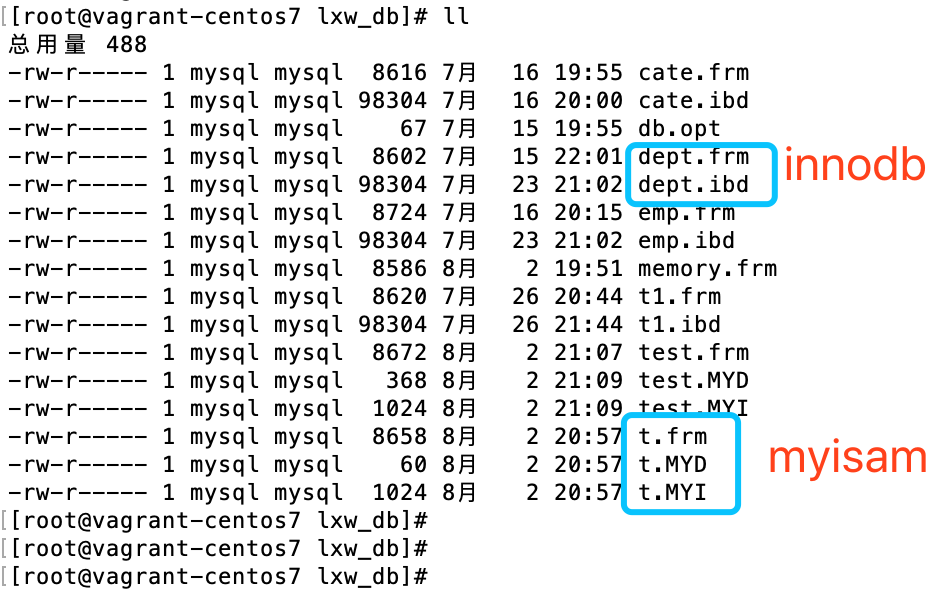 MyISAM在磁盘上存储成三个文件。第一个文件的名字以表的名字开始,扩展名指出文件类型, .frm文件存储表定义,数据文件的扩展名为.MYD, 索引文件的扩展名是.MYI。