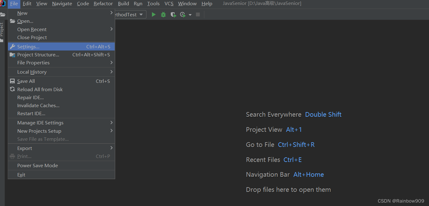 1、第一步:点击File,选择Settings进入第二步
