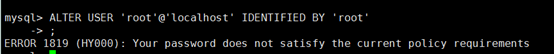 这里的new password要改成你自己的密码哟,我想把密码改成root,所以我输入:ALTER USER 'root'@'localhost' IDENTIFIED BY 'root';
