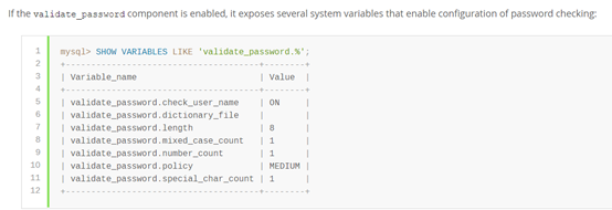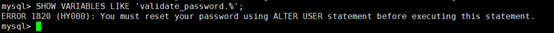 输入:SHOW VARIABLES LIKE 'validate_password.%';