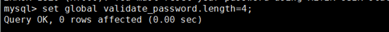 validate_password.length 是密码的最小长度,默认是8,我们把它改成4