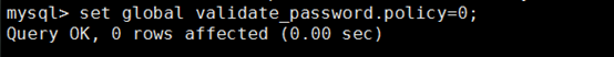 validate_password.policy 验证密码的复杂程度,我们把它改成0