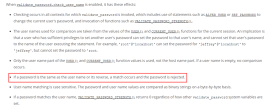 validate_password.check_user_name 用户名检查,用户名和密码不能相同,我们也把它去掉