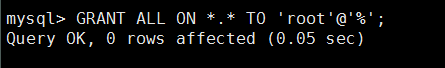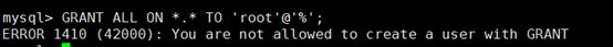 GRANT ALL ON *.* TO 'root'@'%'; 就行了,但是一不下心报了个错: