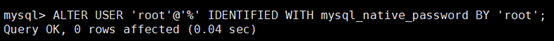 ALTER USER 'root'@'%' IDENTIFIED WITH mysql_native_password BY 'root';