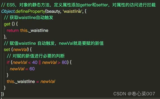 给对象/数组定义属性(一次只能定义一个属性),目的是对属性做限制和约束